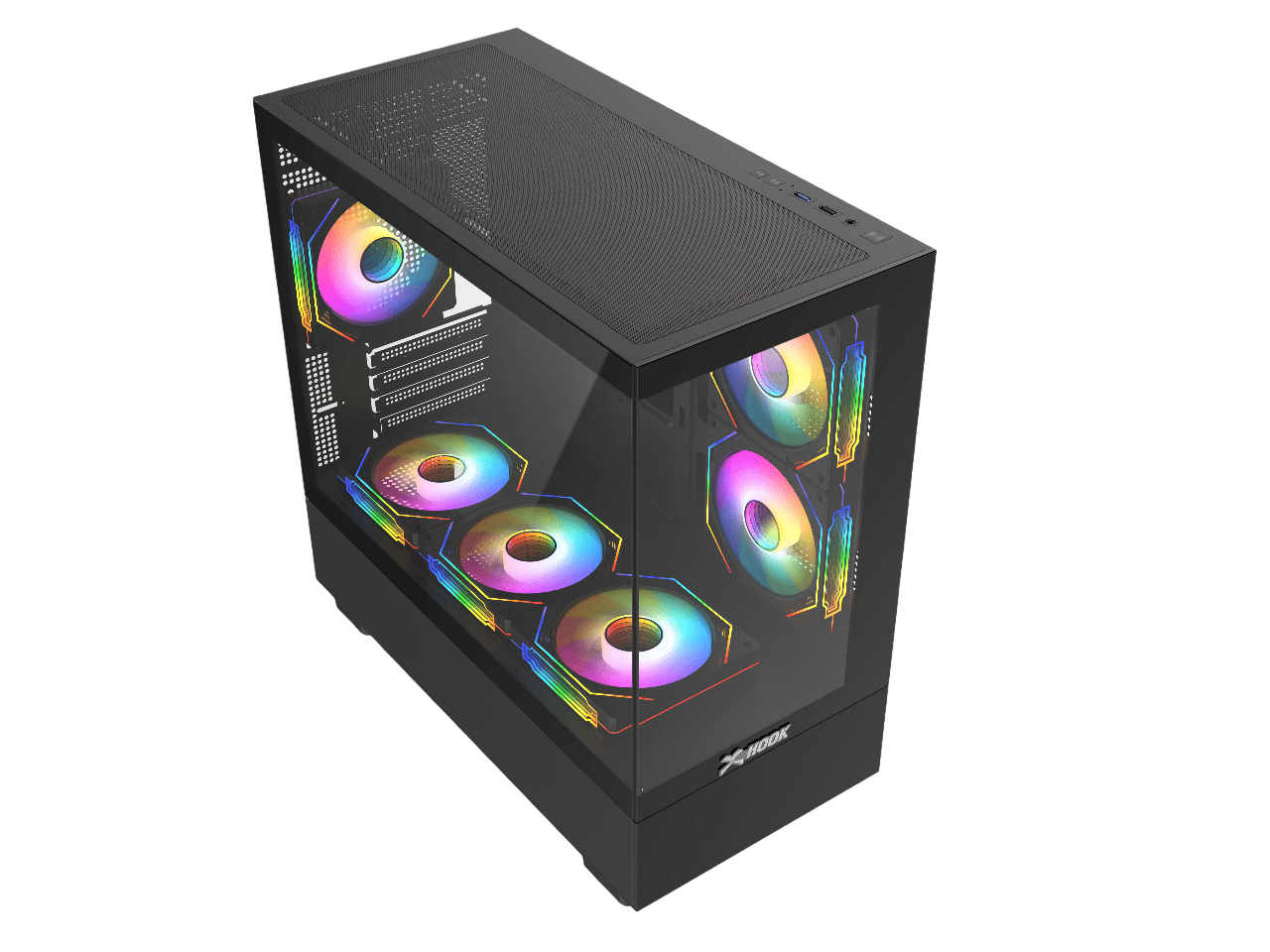 - 6 مراوح ARGB مقاس 120 مم متضمنة: توفر إضاءة نابضة بالحياة وتدفق هواء مثالي.